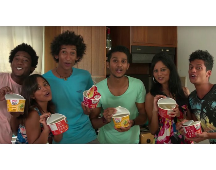 1. Peel the lid to the lines as per indications provided. Add seasoning powder and extra garnish into the bowl. NB: Not microwaveable |